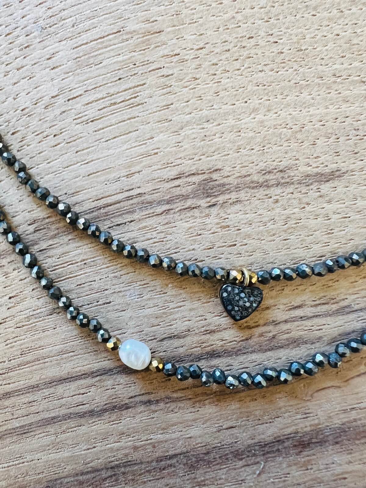 LES DÉTAILS du Collier pyrite coeur diamants: