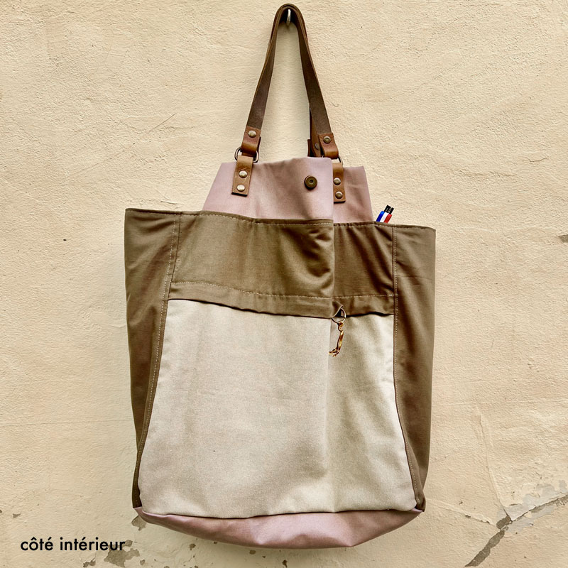 INTERIEUR – et côté réversible composé en toiles de coton beige et toile de lin avec 1 grande poche fermé par fermeture glissière