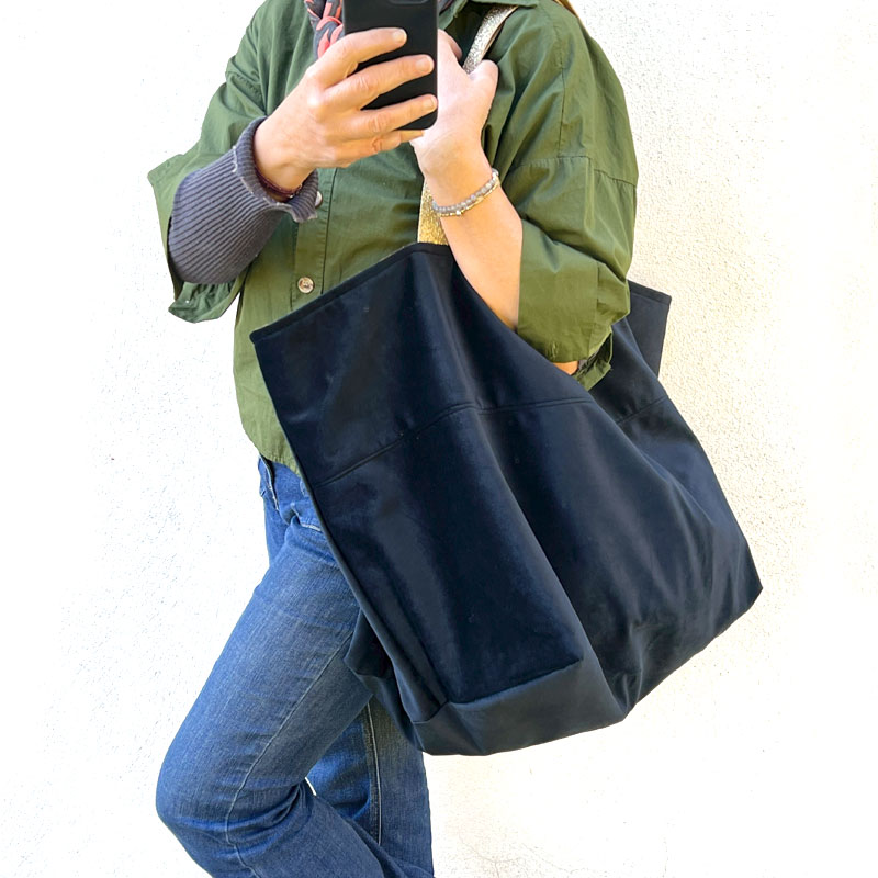 Ce grand sac en tissu de velours est réalisé dans notre atelier de création au sud de la France. Nous créons des grands sacs avec une grande attention aux détails, à la qualité des matériaux et à la finesse de l’exécution.