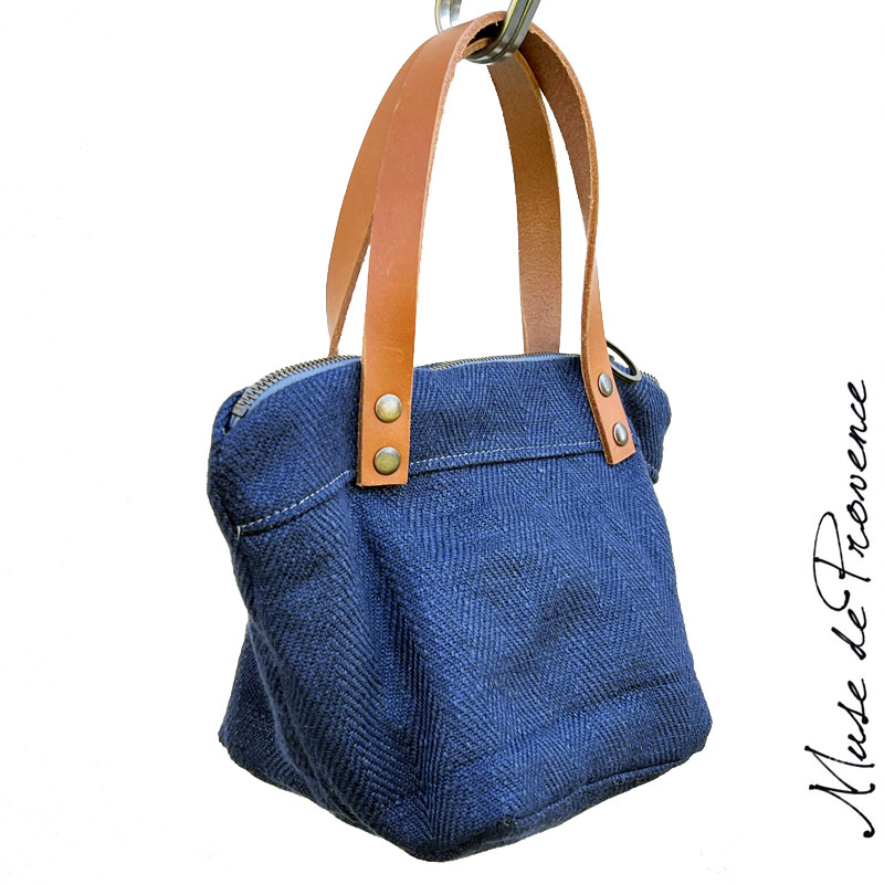 Mini sac cabas en lin de taille XS. Ce petit sac à main pour femme séduit par sa ligne épurée et son minimalisme raffiné, pour une allure chic et décontractée. Le sac est crée en toile d’ameublement de lin en très joli ton bleu marine. Téléphone, clés et petits indispensables du quotidien, le sac à main accueille que l’essentiel. Ce mini cabas se porte délicatement à la main.