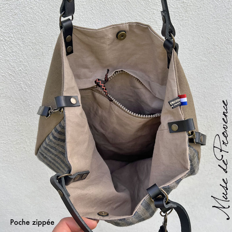 INTERIEUR – en tissu coton beige avec une grande grand poche zippée