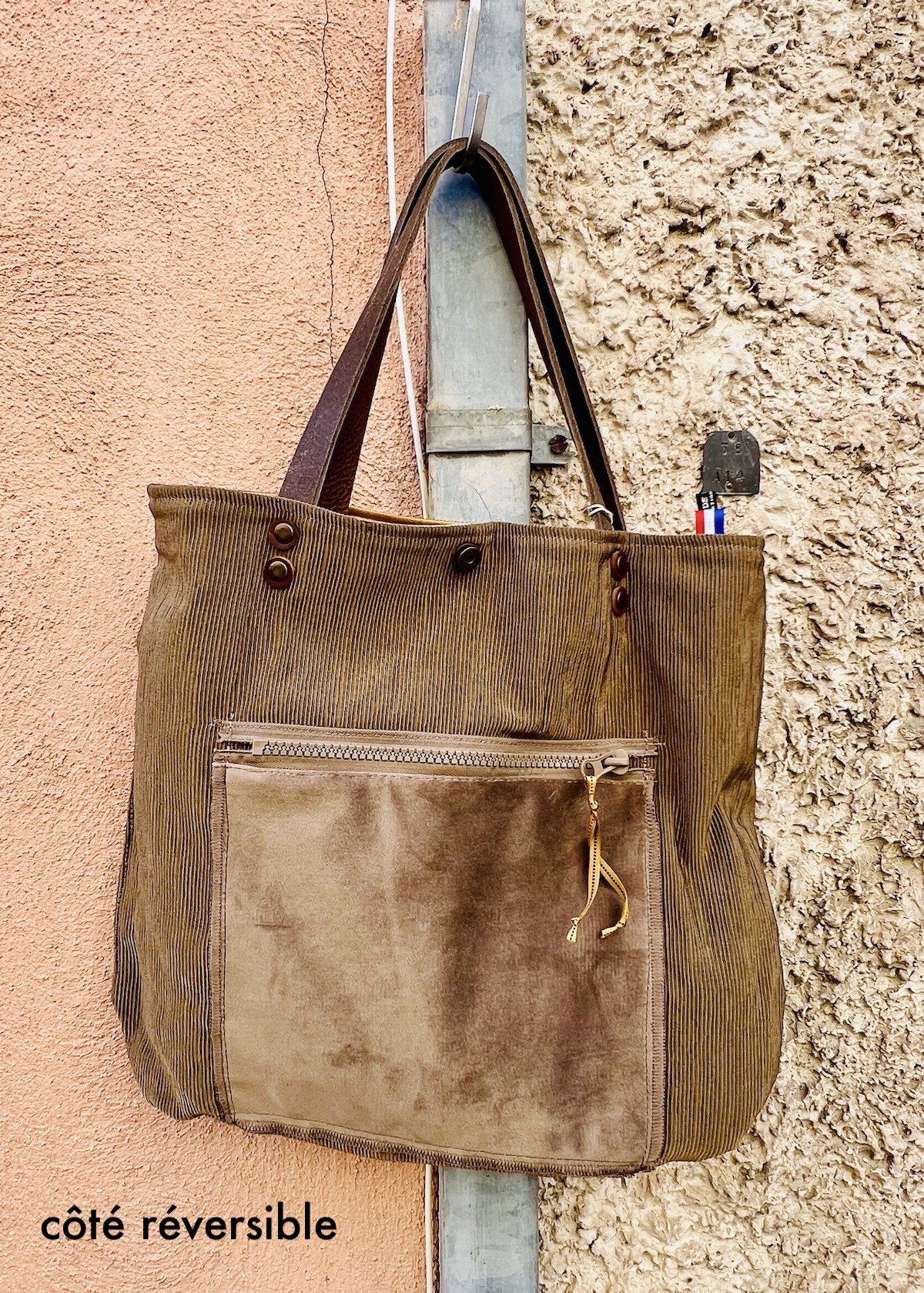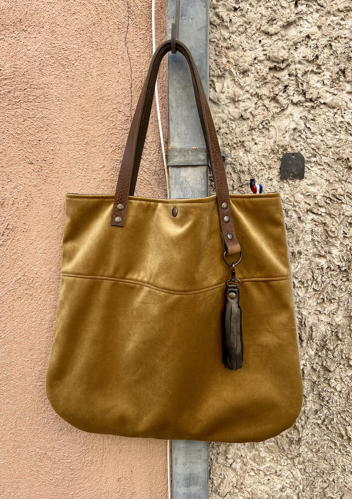 Élégant et léger, ce cabas en velours lisse de tissu d’ameublement marie beige et doré avec raffinement. Anses en cuir au tannage végétal, poche zippée intérieure. Fabriqué artisanalement avec un savoir-faire de grande qualité dans mon atelier du Luberon, spécialisé dans les sacs sur mesure. Style bohème chic, unique et durable.