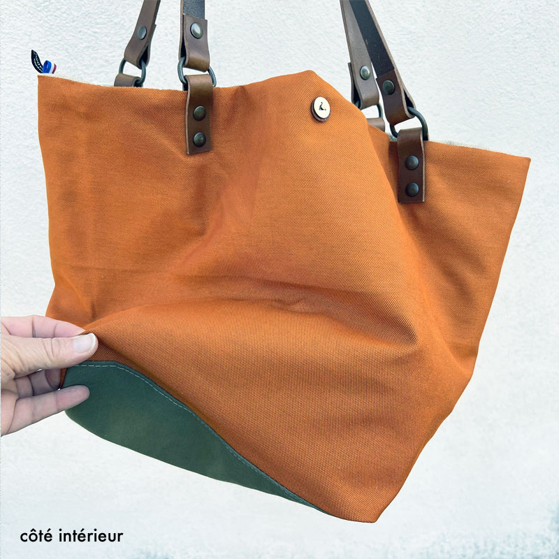 Pensé pour s’adapter à votre vie, ce cabas offre un intérieur réversible en rouille et vert avec fond semi rigide anthracite. Une poche zippée intégrée permet de garder vos essentiels à portée de main, en toute sécurité.
