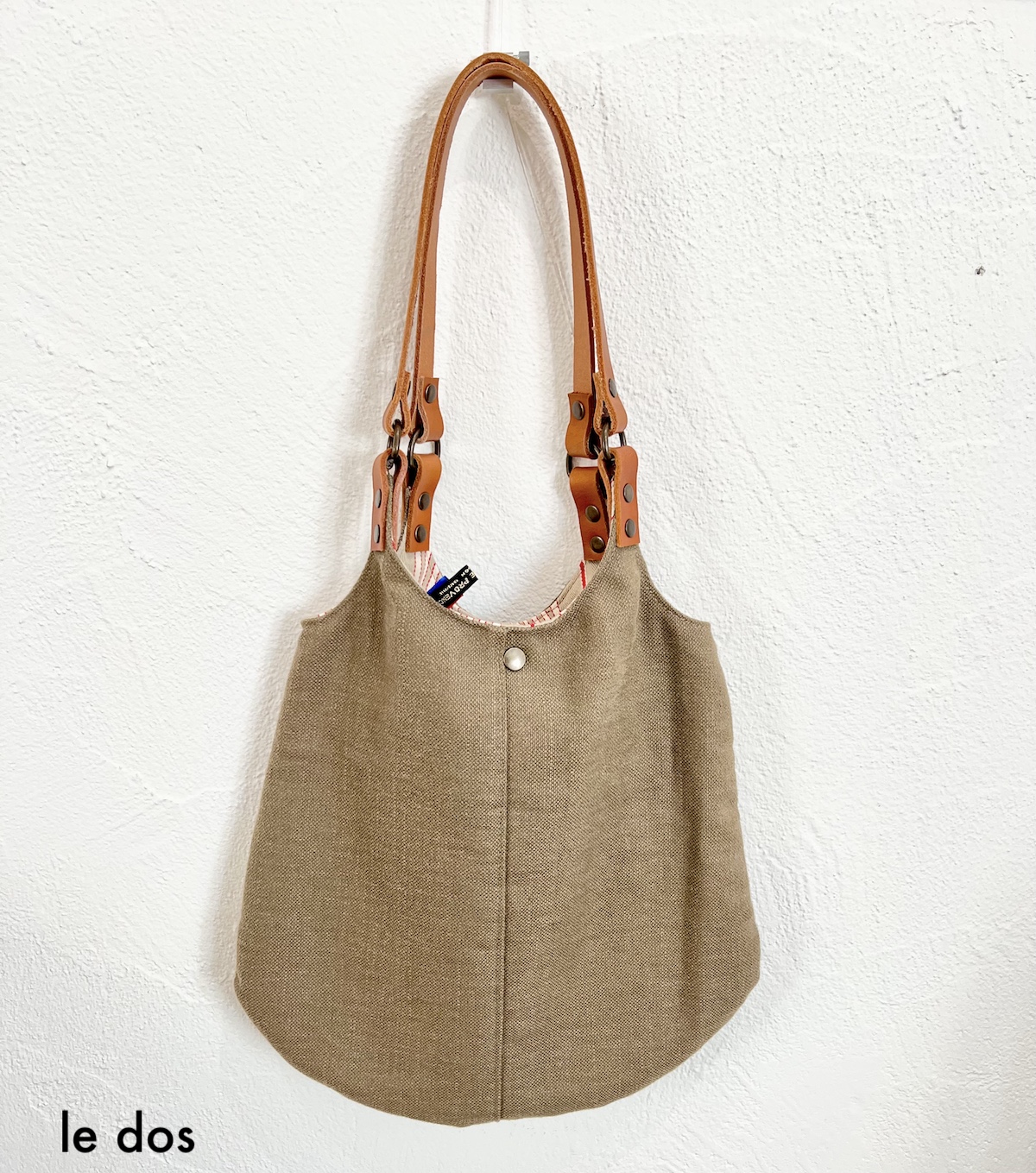 Anses : 2 anses en cuir brun au tannage végétal fixé aux rivets en laiton vieilli
