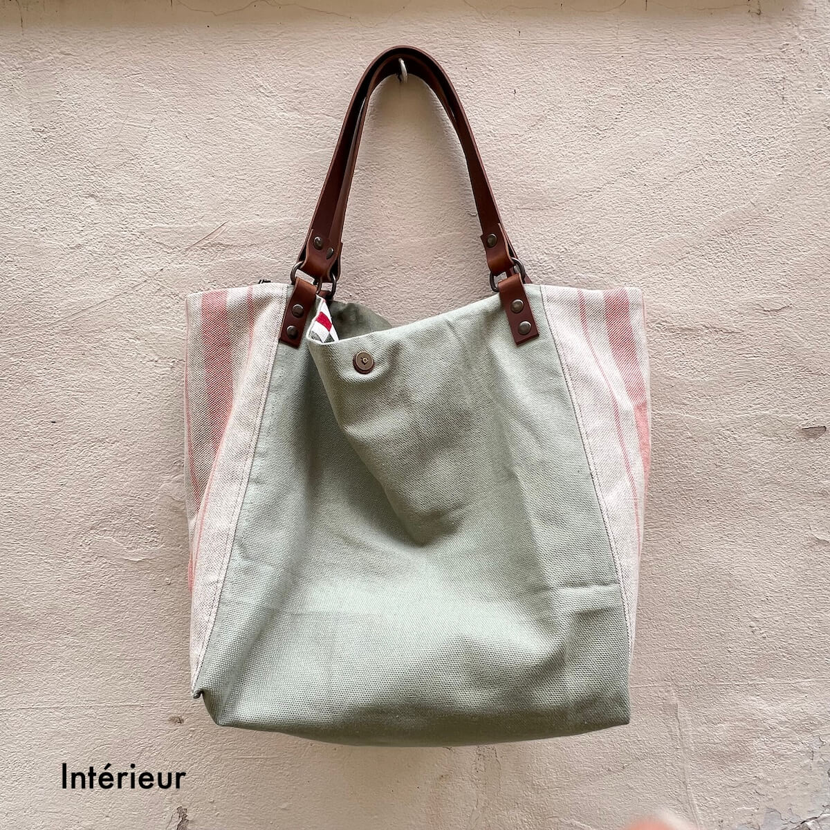 Its sturdy saddle leather handles highlight traditional craftsmanship. Each piece is unique, handcrafted in our workshop in Provence.