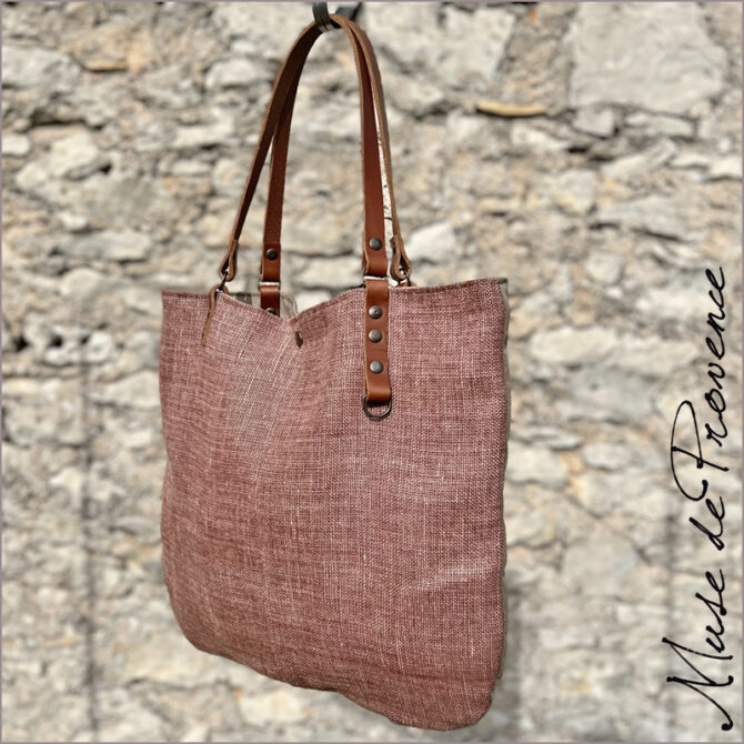 Le cabas slim en doubleface lin rose et beige noisette avec 2 anses et 1 anse bandoulière en cuir au tannage végétal. Ce cabas slim est pratiquer pour y glisser l’ordinateur, iPad ou autre accessoire de travail..