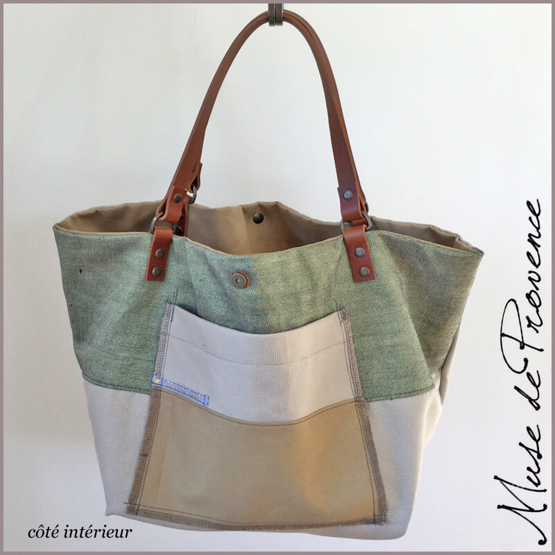 INTERIEUR  – en toile de coton beige avec bord doré  avec 1 poche