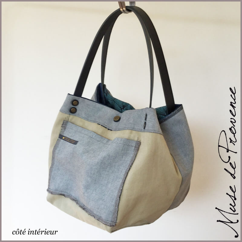 INTERIEUR – en tissu de coton beige 1/2 et gris 1/2 avec 1 poche