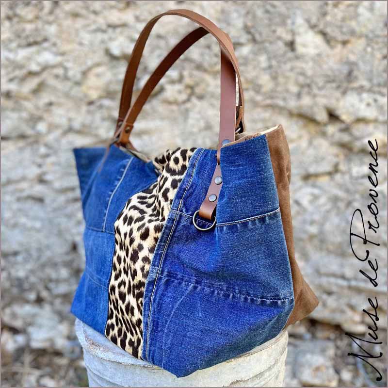Aventure est un sac cabas réversible en jean recyclé. Ce sac jean est un sac eco responsable. Les jeans (neuf, jamais porté) sont issu de fin de stock d’un magasin de prêt-à-porter haut de gamme. Le jean de sac est associé à une toile de coton brun et à un tissu léopard. Le jean est transformé en sac cabas bohème chic dans notre atelier en Provence. Chaque sac cabas unique et original est réalisé sur mesure. 100% de nos sacs jean sont fabriqué en modèle unique.