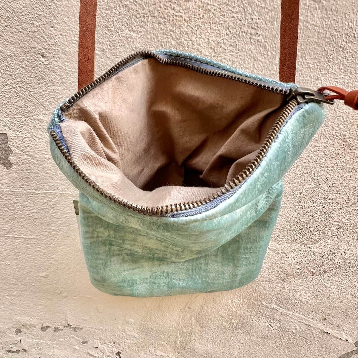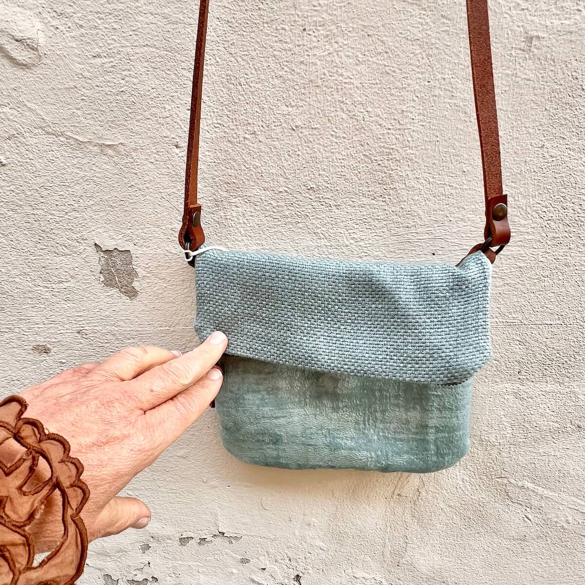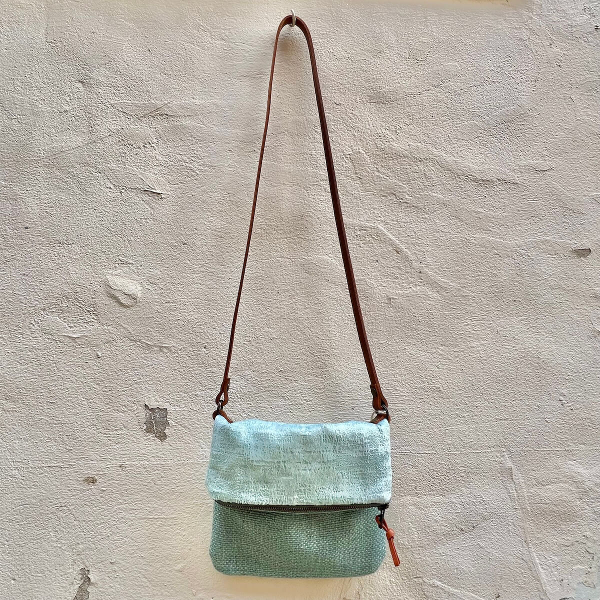 Délicat et intemporel, ce sac bandoulière séduit par son jeu subtil de matière et de couleur. Compact, il se porte à l’épaule ou croisé sur cœur. En lin et toile à la douceur veloutée vert celadon. L’anse en cuir brun, travaillée au tannage végétal, l’authenticité du savoir-faire artisanal. Fermé par un zip métallique, l’intérieur doublé de coton beige accueille vos essentiels avec élégance. Sac bandoulière de taille XS, un compagnon du quotidien, à la fois pratique et poétique. Sac fait main en France, conçu pour durer et résister à l’épreuve du temps.