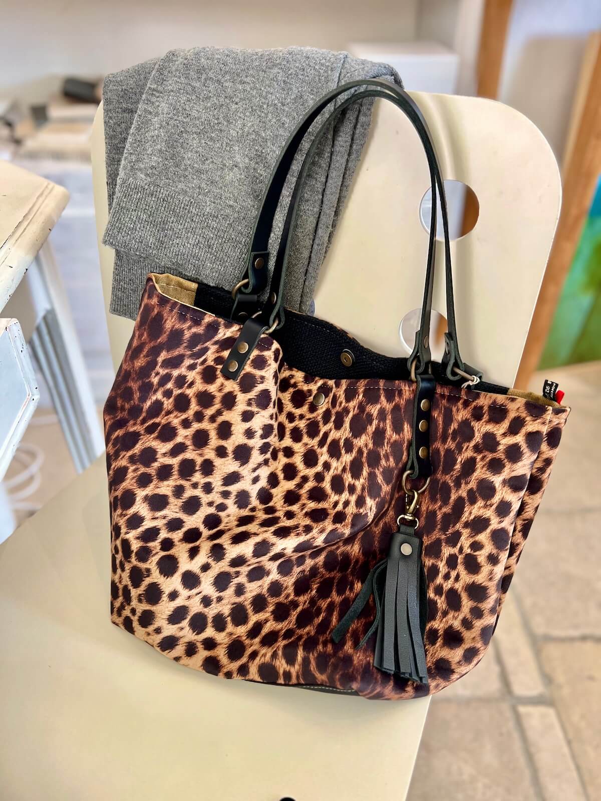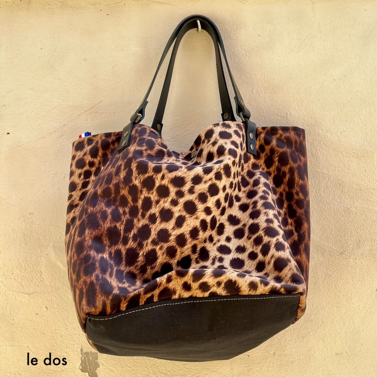 INTERIEUR – et côté réversible composé en toiles noir et léopard avec 1 grande poche fermé par fermeture glissière