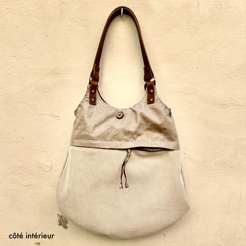 INTERIOR and reversible side – in taupe corduroy fabric with 1 large pocket closed by zipper